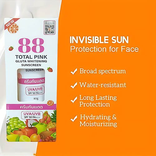 88 Total Pink Gluta Whitening Sunscreen SPF50 PA+++ – 80g