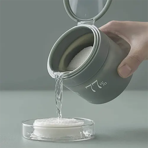 1. After cleansing, use the embossing side of the pad to cleanse the face along the skin texture, avoiding the lip and eye areas.