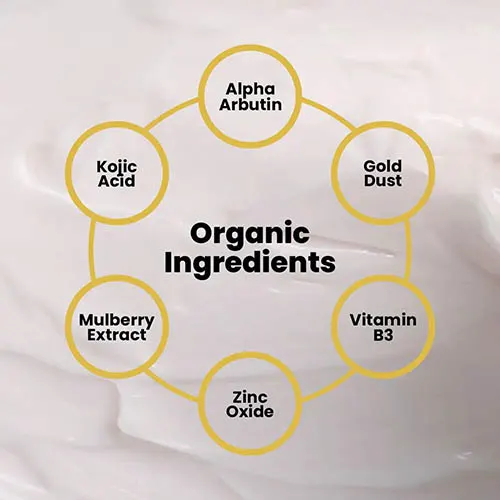 Enhances Skin Texture: Infused with Gold Dust and Alpha Arbutin, this cream smooths skin, minimizes roughness, and promotes a radiant, flawless complexion.