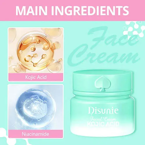 Disunie’s Kojic Acid & Niacinamide Facial Cream is a targeted brightening moisturizer formulated to reduce dark spots, refine uneven tone, and restore a radiant glow. Kojic Acid helps fade hyperpigmentation and discoloration, while Niacinamide (Vitamin B3) minimizes pores, balances oil, and strengthens the skin barrier. Together, they work to reveal a smoother, clearer, and more luminous complexion.