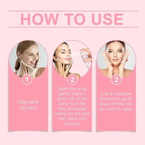 Effective: Facial Hair Removal Spray effectively removes unwanted facial hair, leaving the skin smooth and hairless.