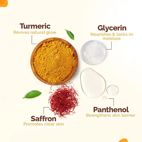So, sit back and experience the magic of these ingredients without getting your hands messy Turmeric – A powerful antioxidant that gives skin a natural glow. Saffron – Brightens skin, heals and prevents acne. Panthenol – Hydrates, repairs and strengthens skin barrier. Glycerin – Moisturizes, protects and locks-in hydration. Harnessing the power of traditional beauty secrets, it instantly brightens your skin. So now, you get to enjoy the DIY-like Ubtan glow in a hassle-free way. Safe for normal to oily skin, this pH-balanced, dermatologically tested & Made Safe Certified formula is free from sulfates, parabens, silicones, and mineral oils—so your skin gets only the good stuff No mixing, no mess—just detan and get soft & radiant skin in 15 minutes flat!