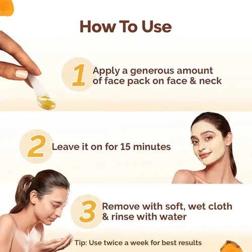 - Step 1 : Apply a generous amount of the face pack on face & neck