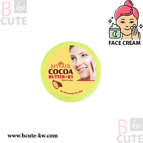 MyFair Skin Cream works by deeply moisturizing the skin, thanks to the hydrating and emollient properties of Cocoa Butter. It forms a protective layer over the skin, preventing moisture loss and promoting smoother skin. This helps soothe dryness, reduce irritation, and maintain skin elasticity, improving overall skin appearance.