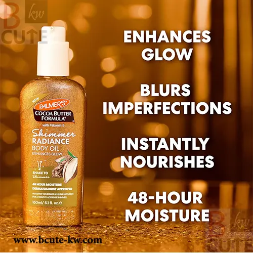 - Ready, Set, Glow: Palmer’s Shimmer Radiance Body Oil amplifies skin’s deep, rich tone and tan. A body shimmer that provides a gorgeous lit-from-within golden glow. Get your glow up and illuminate skin with our shimmer oil