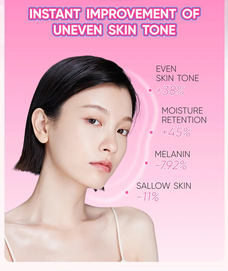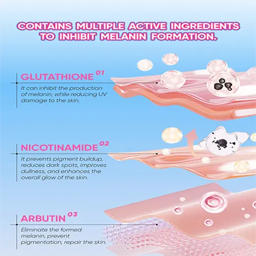 Nicotinamide: Nicotinamide (Vitamin B3) contains niacin, which inhibits melanocytes, preventing pigment accumulation and making the skin brighter while reducing dark spots. Additionally, niacinamide has anti-glycation properties, which help improve dullness and sallow skin, enhancing overall skin radiance