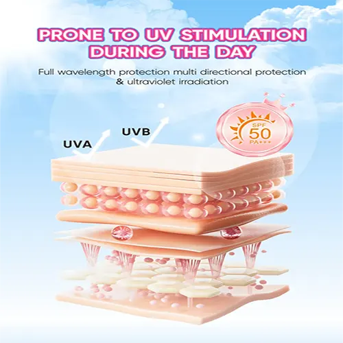 — Main Function: Brighten the skin, suitable for daytime use for sun protection and whitening repair. Contains triple whitening ingredients to protect skin radiance, and includes SPF50 to shield against UV rays.