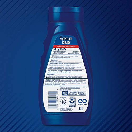 Say goodbye to dry, itchy scalp and take on the day confidently with Selsun Blue Medicated Antidandruff Shampoo. This medicated scalp treatment is made with a new cleaner formula* designed to leave your hair feeling soft and silky. Each bottle includes 1% selenium sulfide to provide maximum strength targeted dandruff control and help prevent and eliminate itching, irritation, flaking, redness, and scaling of the scalp**. It is made free from SLS, parabens, phosphates, phthalates and silicones. Selsun Blue Medicated Shampoo also contains cooling menthol and a quick-lather formula to intensively moisturize and clean your hair while providing soothing relief for your scalp. *Formulated without formaldehyde donors, lilial and residual MEA **Flake and itch associated with dandruff