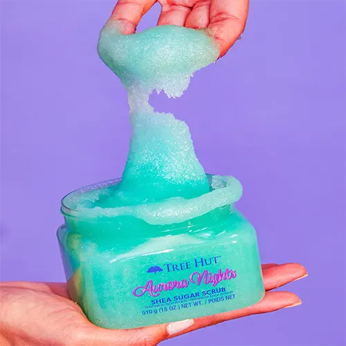Boost your shower routine, scrub away the day and reveal soft, glowing skin with the cozy scent of Aurora Nights! Made with Sugar, Shea Butter, Pistachio Seed Oil, and Willow Bark Extract to leave skin feeling nourished and smelling amazing.
