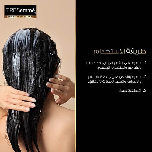 Apply a generous amount of Tresemmé Keratin Smooth Mask once or twice week, distributing evenly from the middle to ends. Work any remaining product through roots. Leave on for few minutes, then rinse out thoroughly.