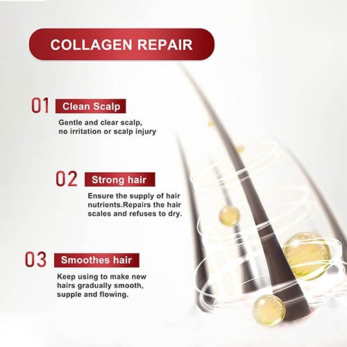 Collagen-Enriched Formula: Strengthens hair strands, improving elasticity and reducing breakage.