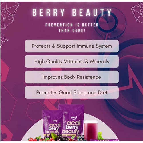 2. 7 in 1 Berry Powder, include: Main Acai Berry, Raspberry, Cranberry, Cherry, Strawberry, Elderberry, Blackberry